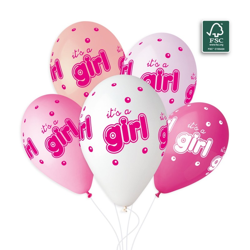 100% FSC-Certified NRL Balloons It's A Girl & Bubbles